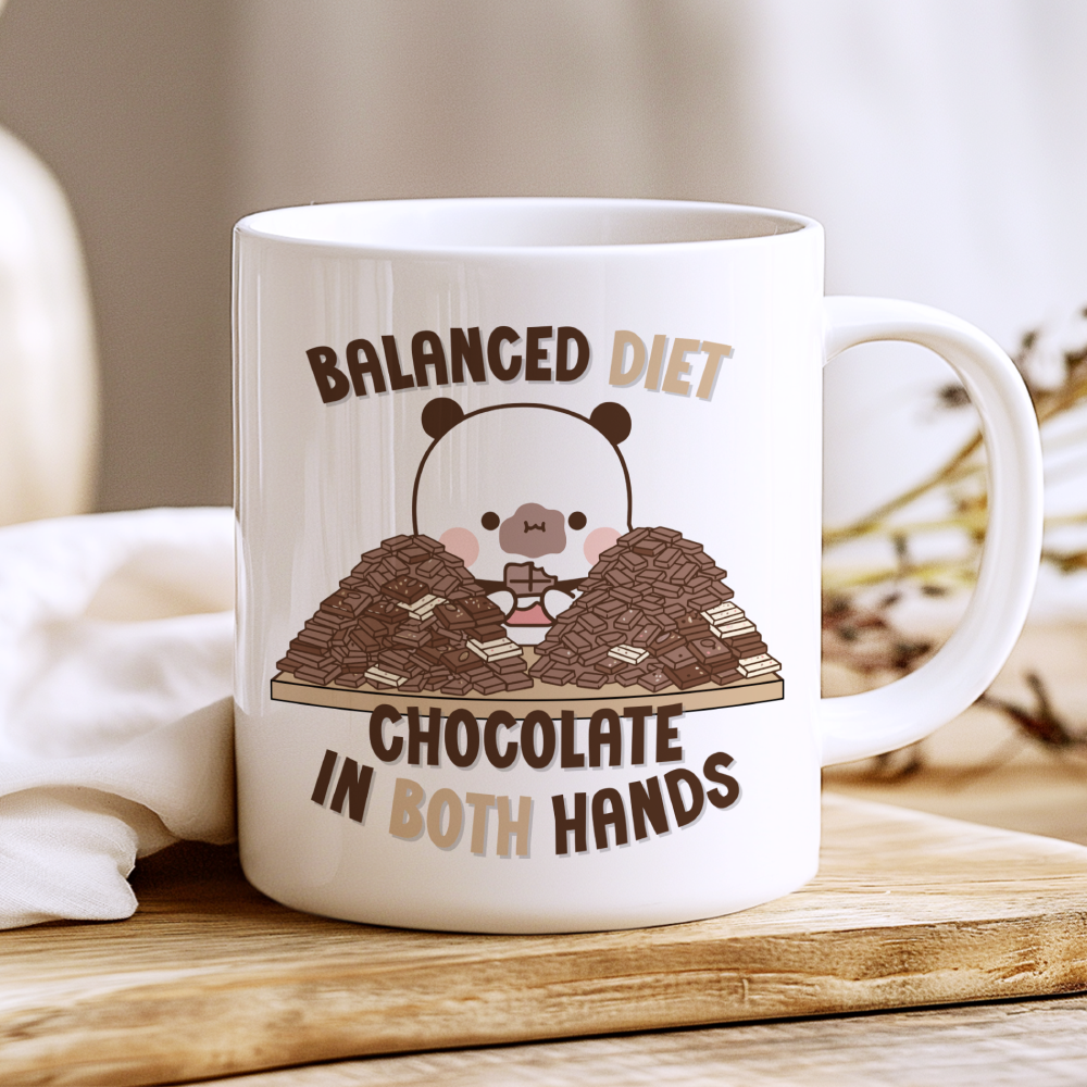 Balanced Diet Mug, Cute Bubu Panda with Chocolate Kawaii Coffee Cup, 11 oz