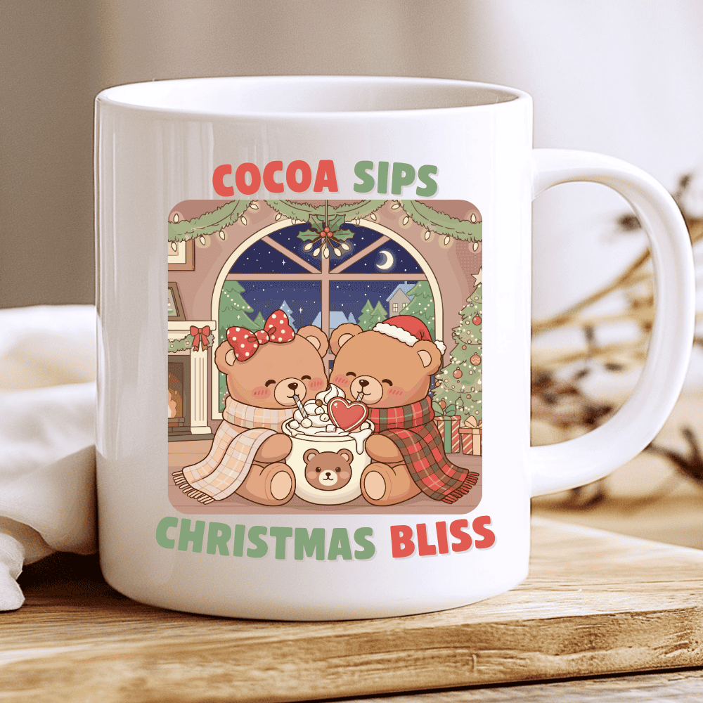 Celebrate love, warmth, and holiday coziness with the Cocoa Sips Christmas Bliss mug, a CocoaBiscuit original designed to melt hearts.