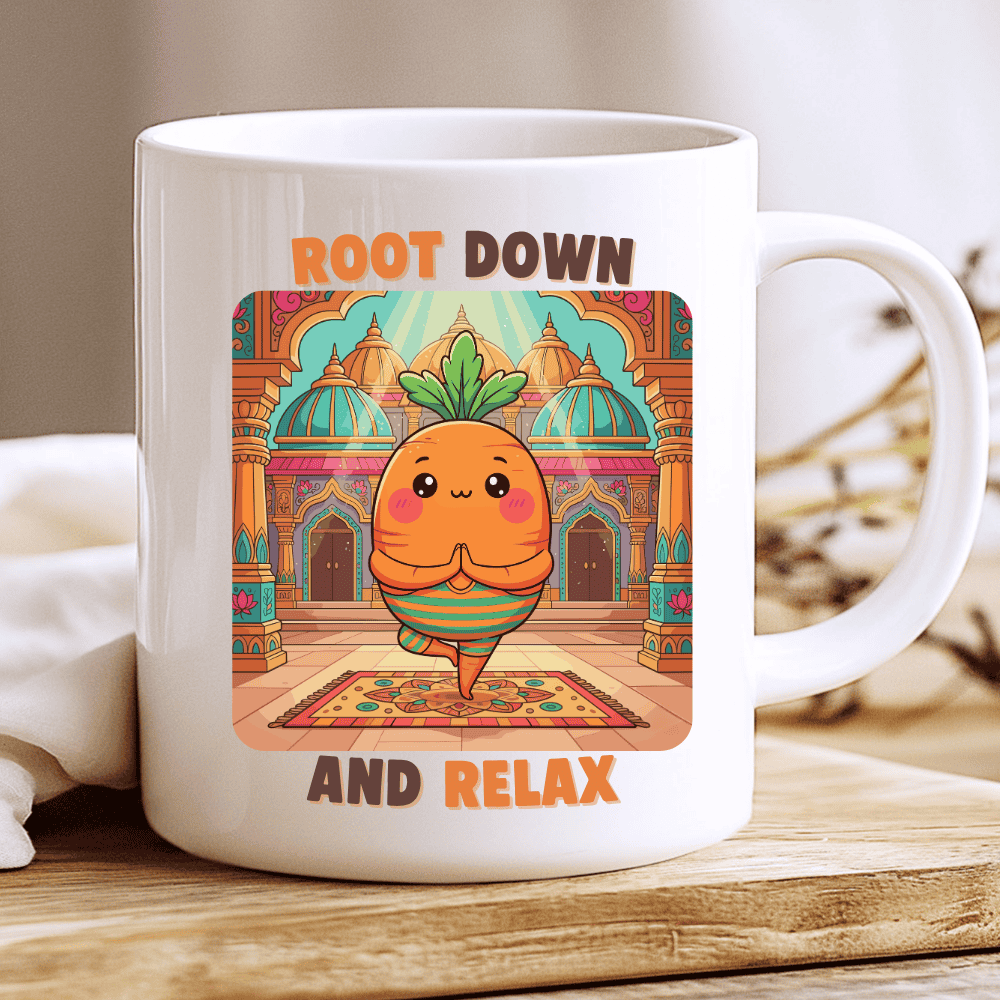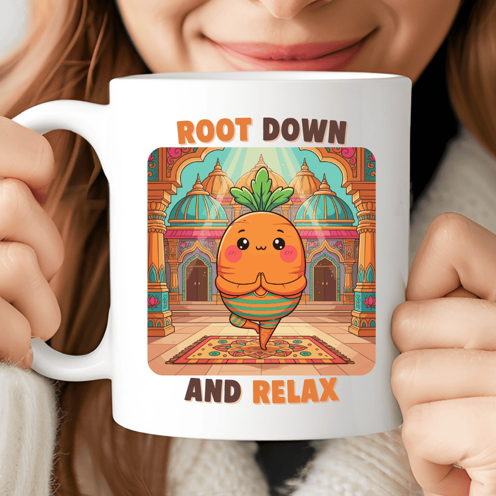 Bring a dose of calm and cuteness to your mornings with the Root Down and Relax Mug.