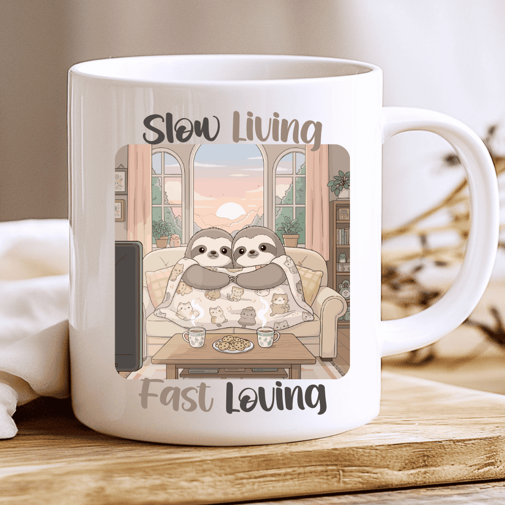 Slow Living, Fast Loving Mug, Cute Kawaii Sloth Love Mug, 11 oz