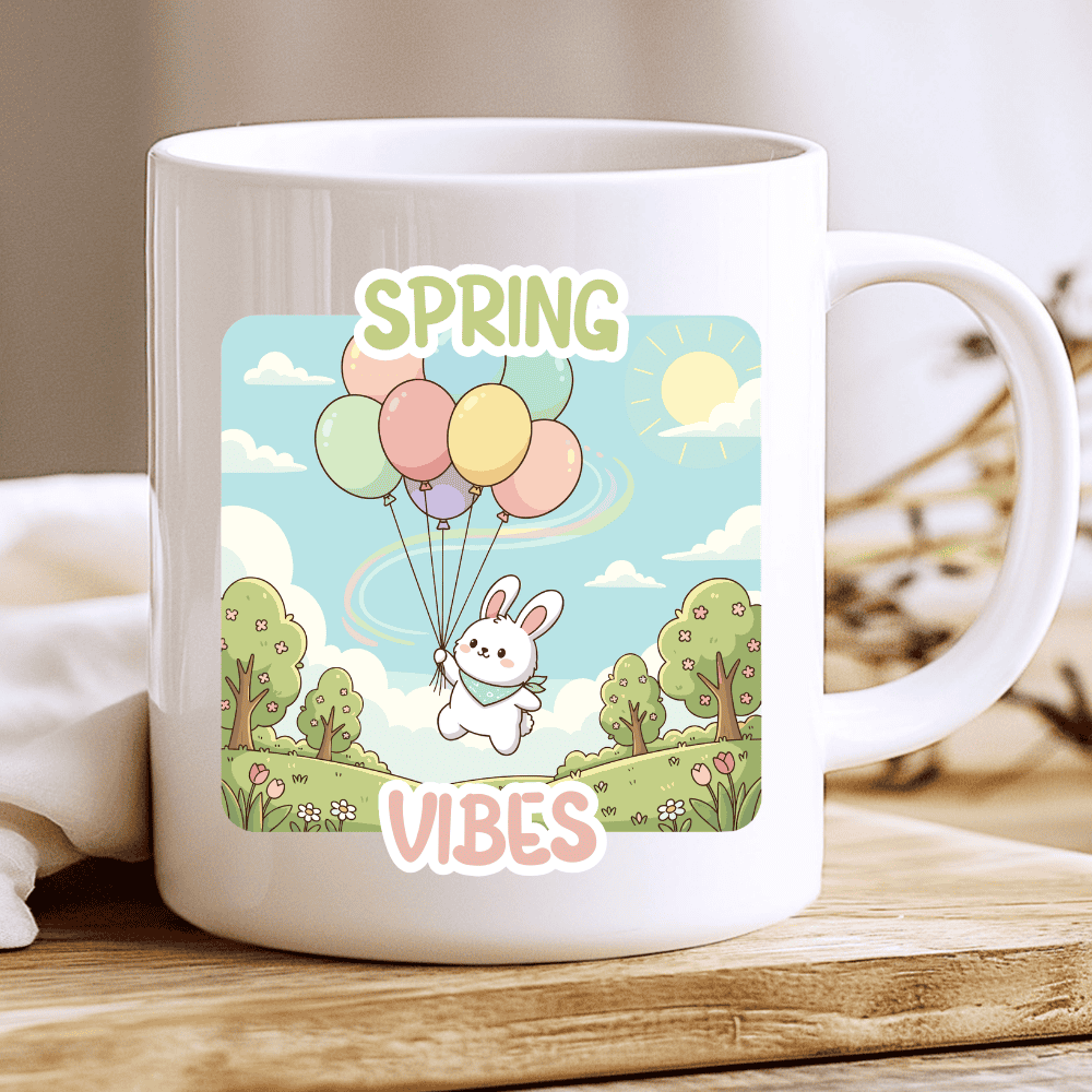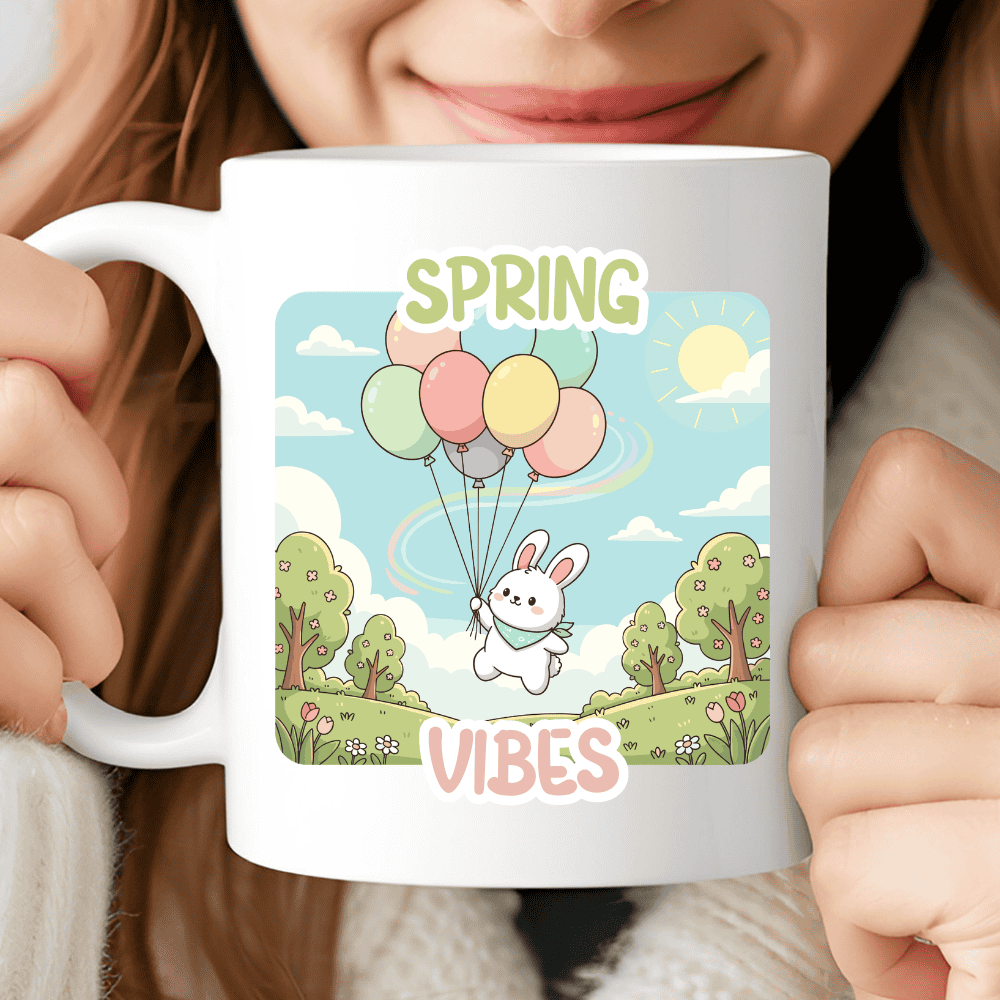 A Cozy Sip of Pure Seasonal Joy. This isn’t just a mug; it’s a daily invitation to let your worries float away and embrace the brightness of the sun. Our bunny validates your need for peaceful, happy moments, turning every tea time into a celebration of springtime light. It makes for the perfect spring gift for the dreamer in your life, the flower enthusiast, or anyone who needs a little reminder that brighter days are here. Let this floating bunny be the centerpiece of your morning routine, proving that life is much better when you’re drifting on Spring Vibes and cozy comforts. It’s sturdy and glossy with a vivid print that’ll withstand the microwave and dishwasher.