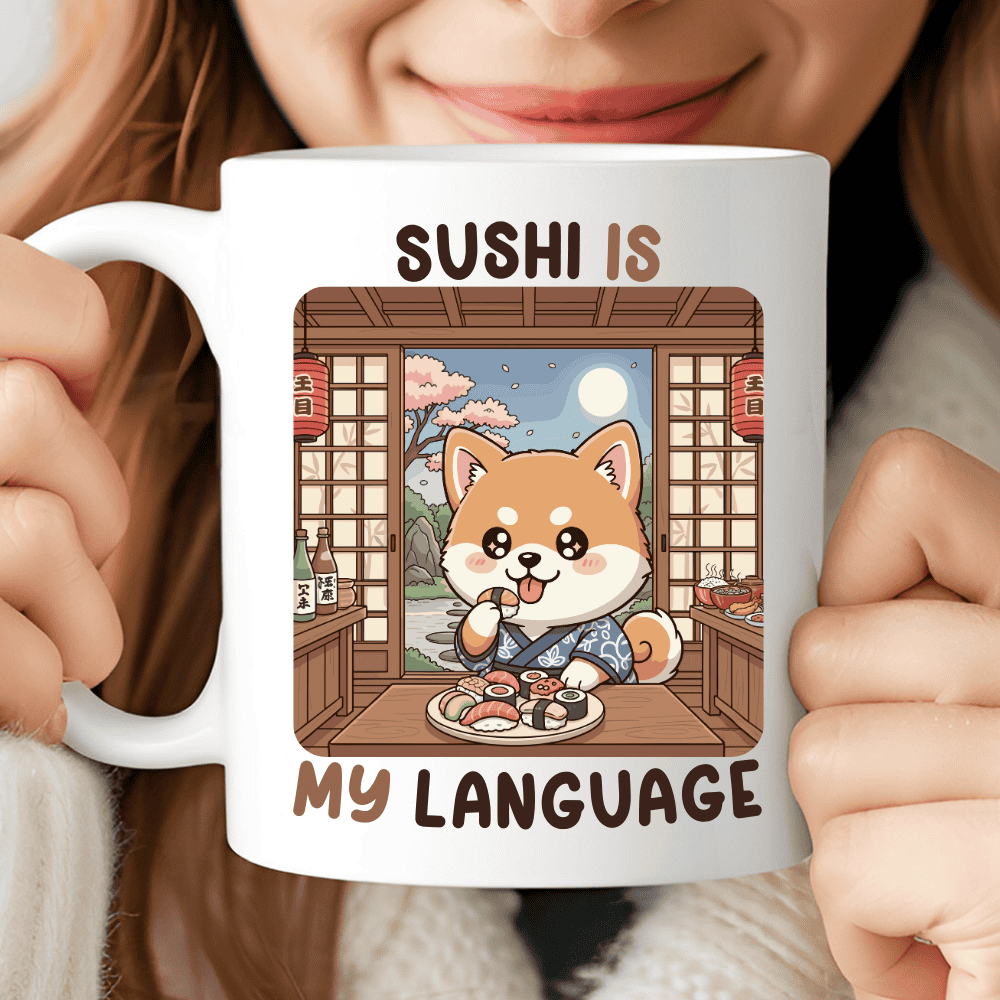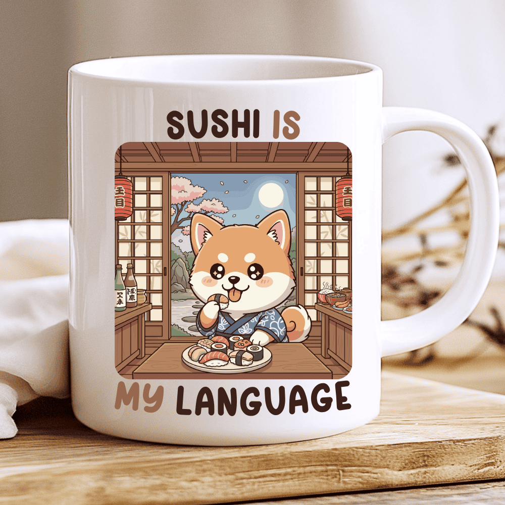 Sushi Is My Language, Akita Dog Mug, Cute Sushi Lover Gift, 11 oz