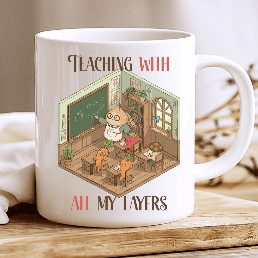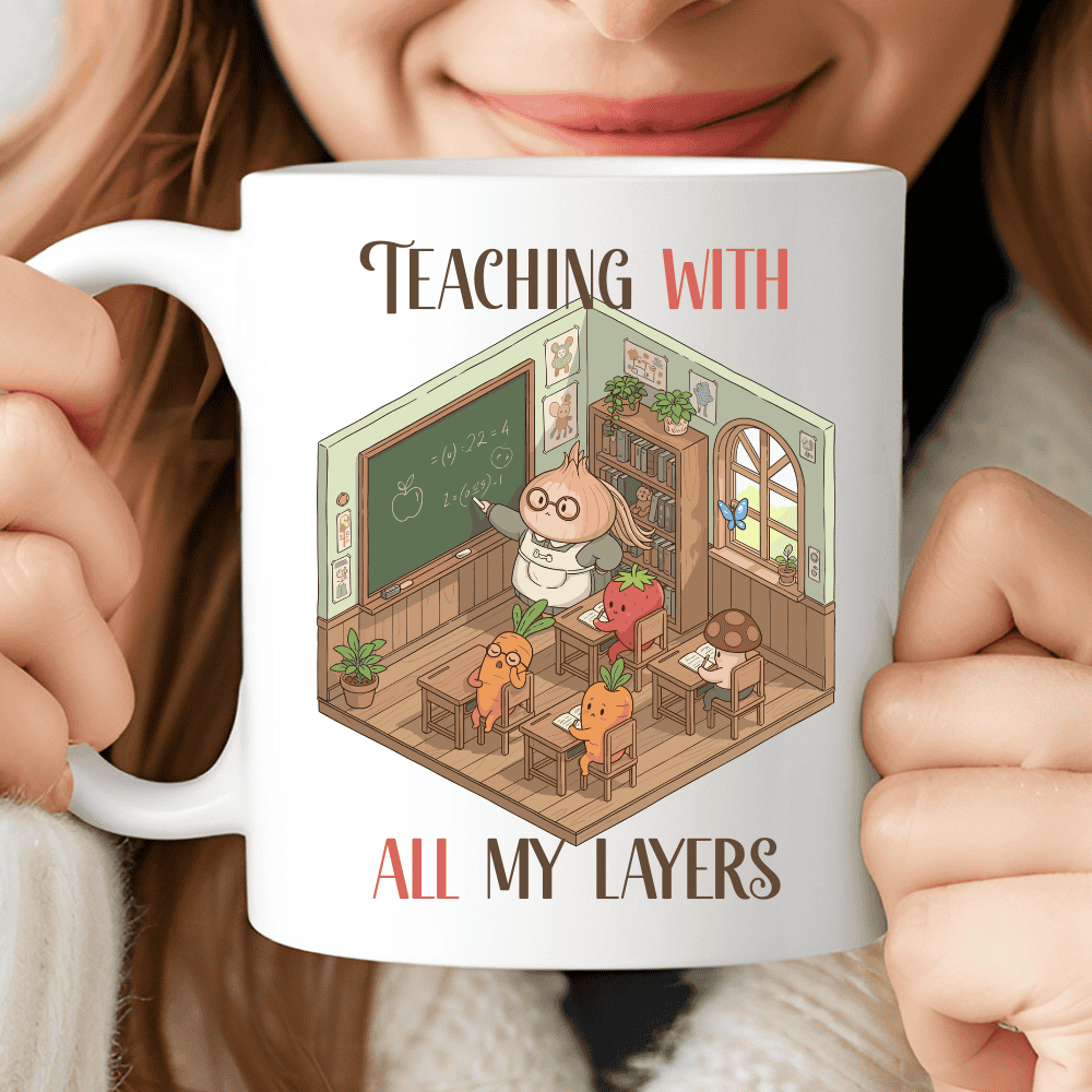This Teaching with All My Layers Mug brings cozy classroom charm to your daily routine. Featuring an adorable onion teacher and her veggie students learning together, it’s the perfect kawaii gift for educators, teacher appreciation week, or anyone who loves cute school-themed art. A sweet reminder that every great teacher has many layers of wisdom and heart.