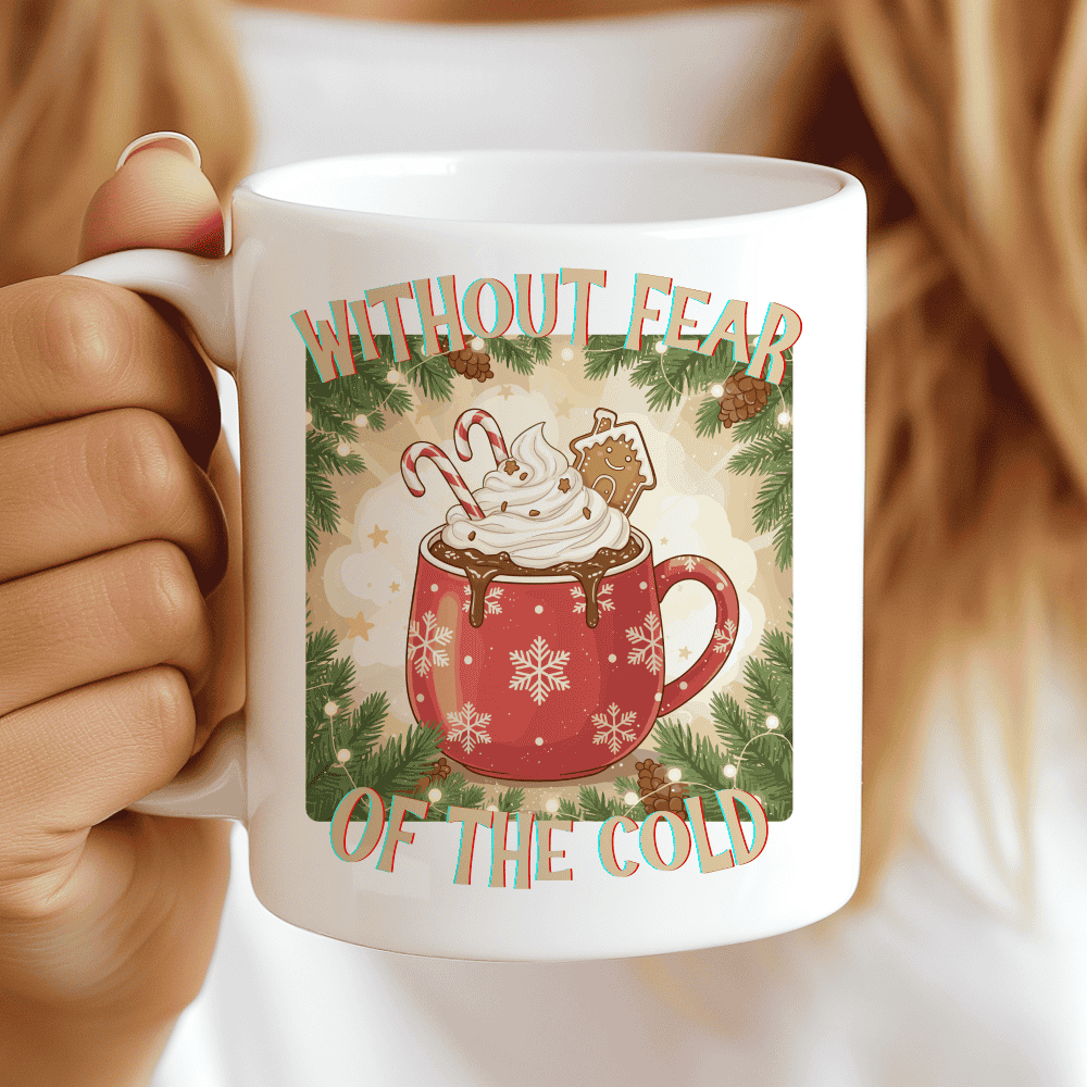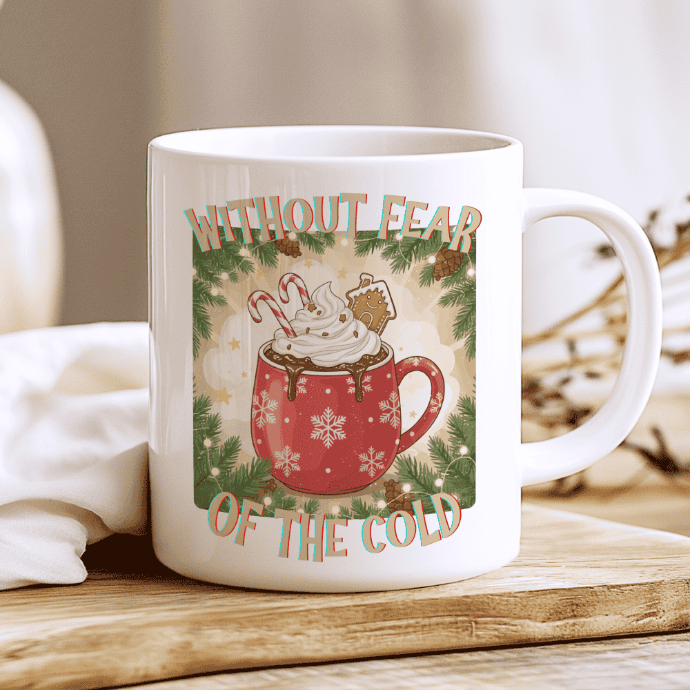 A heartwarming Without Fear of the Cold mug that blends winter magic, creamy sweetness, and cozy Christmas spirit in every cup.